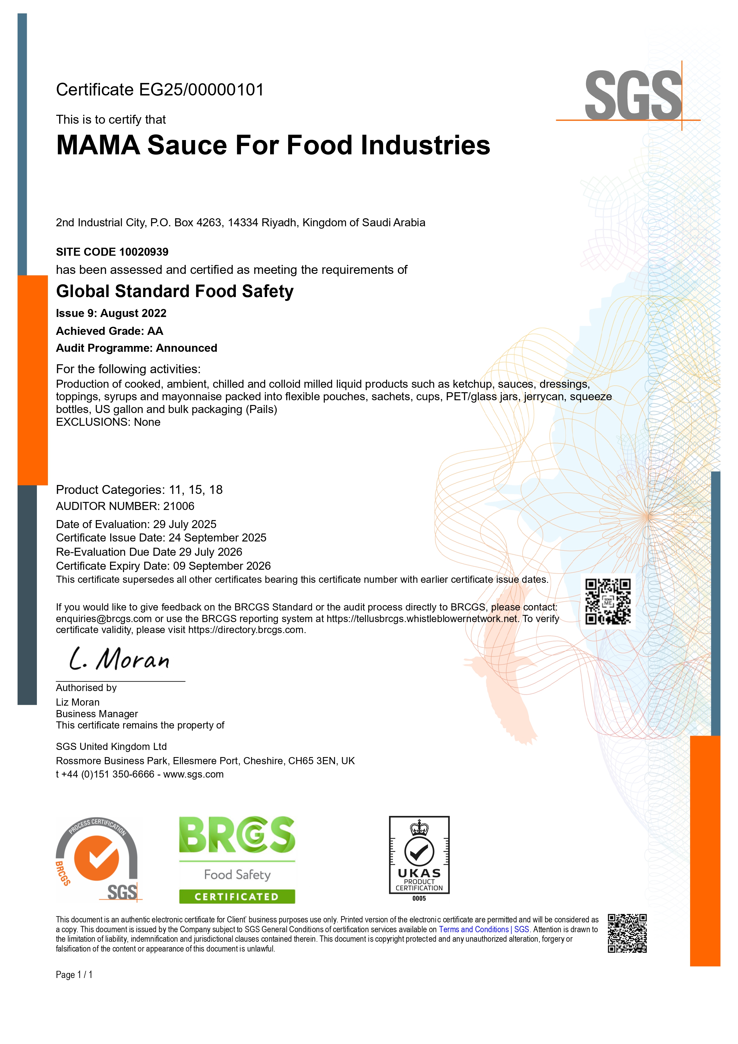 We are proud to have achieved the BRCGS certification, which represents one of the highest global standards in food safety. This milestone reflects our unwavering commitment to food safety, quality, and continuous improvement. This achievement not only strengthens the trust of our partners and customers but also supports our continued business growth and expansion into new markets.